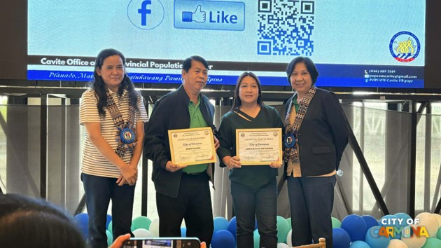 Bilang pakikiisa sa Population and Development Week, ginawaran ng dalawang Certificate of Recognition ng Office of the Provincial Population Officer ang Pamahalaang Lungsod ng Carmona, sa pangunguna ng Office of the City Population Officer, sa ginanap na awarding ceremony noong November 25 sa Tagaytay City Hall.